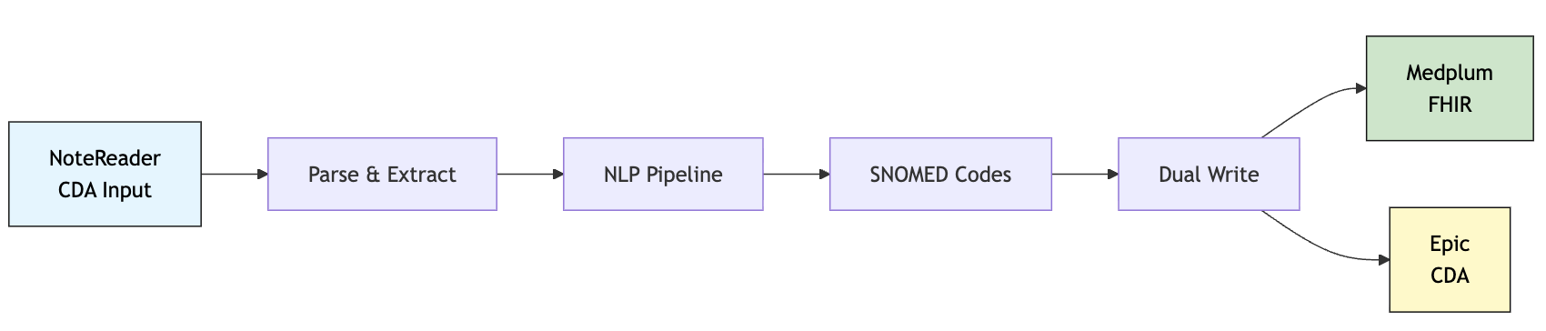 - Legacy system integration - Processes CDA documents from Epic NoteReader workflows
